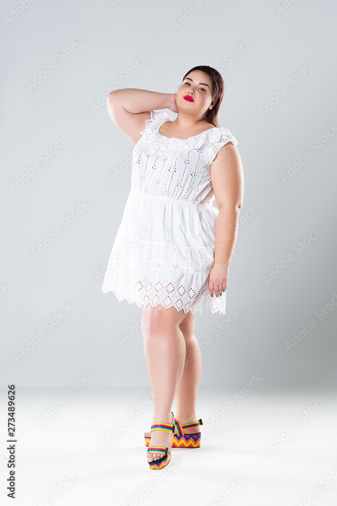 Portrait Fat Woman White Dress Who Stock Photo 1555905986