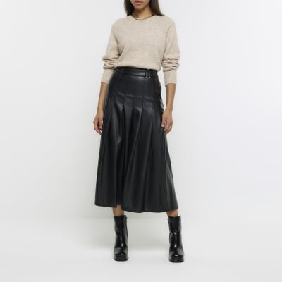 Faux leather midi skirt white clearance, Black faux leather pleated midi skirt River Island clearance