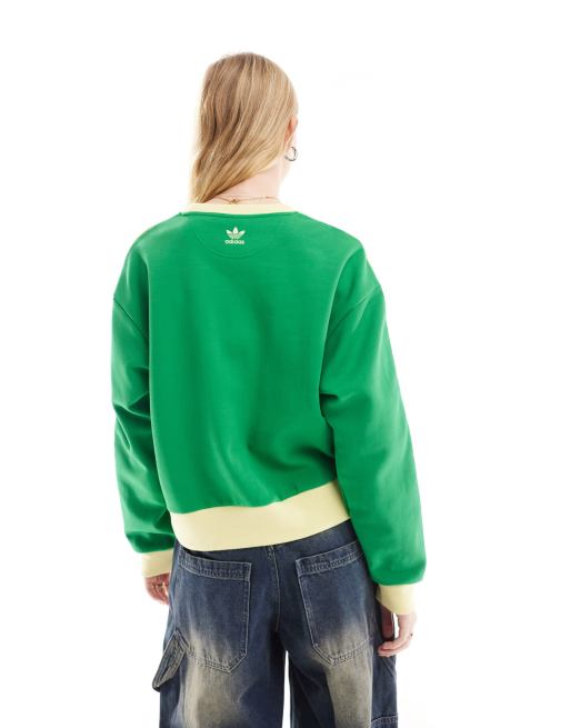 adidas Originals Felpa verde e gialla con logo r tro