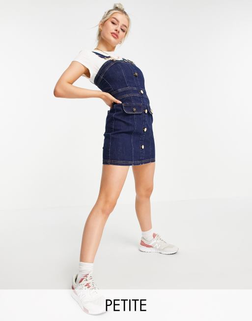 River Island Petite fitted denim dungaree mini dress in dark auth blue
