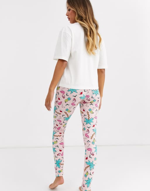 ASOS DESIGN Christmas I m lit flamingo tee legging pyjama set ASOS