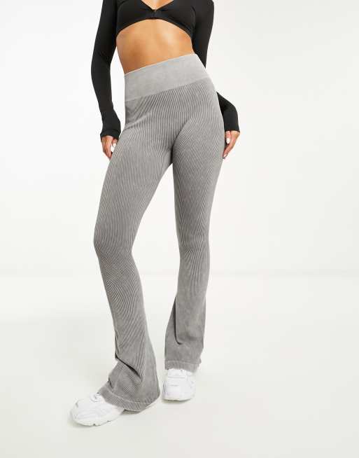 ASOS DESIGN seamless co ord ribbed flare legging in washed charcoal