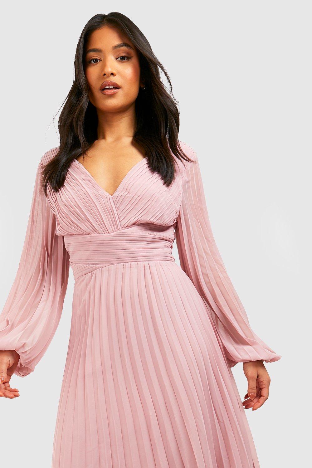 Petite Pleated Plunge Wrap Maxi Dress boohoo