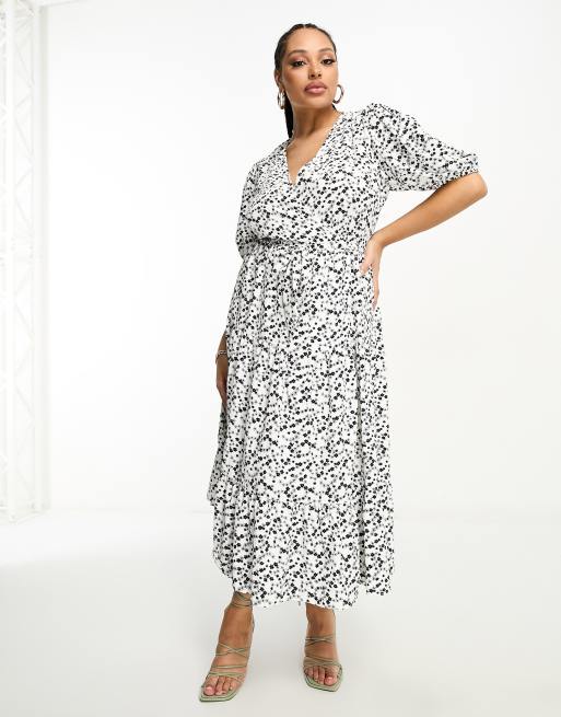 Floral print short sleeve tie waist maxi dress clearance, Glamorous Curve short sleeve tie waist wrap maxi dress in black white ditsy clearance