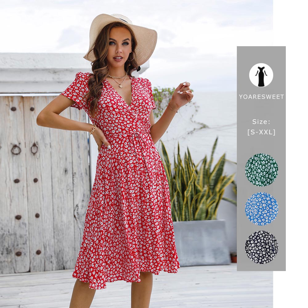 cchome Summer New Dress Women s Korean Short Sleeve Floral
