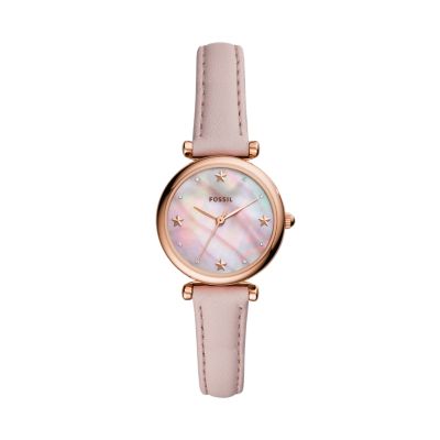 Carlie Mini Three Hand Blush Leather Watch ES4525 Fossil