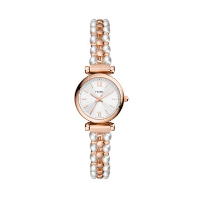 Fossil pearl watch clearance, Fossil Carlie Mini Rose Gold Mother of Pearl Women s Watch ES4867 clearance