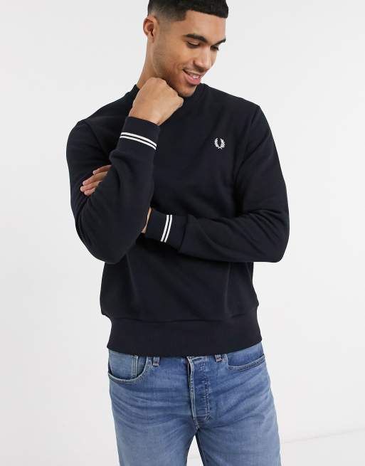 Fred perry crew neck sweatshirt clearance, Fred Perry twin tipped crew neck sweat in navy ASOS clearance