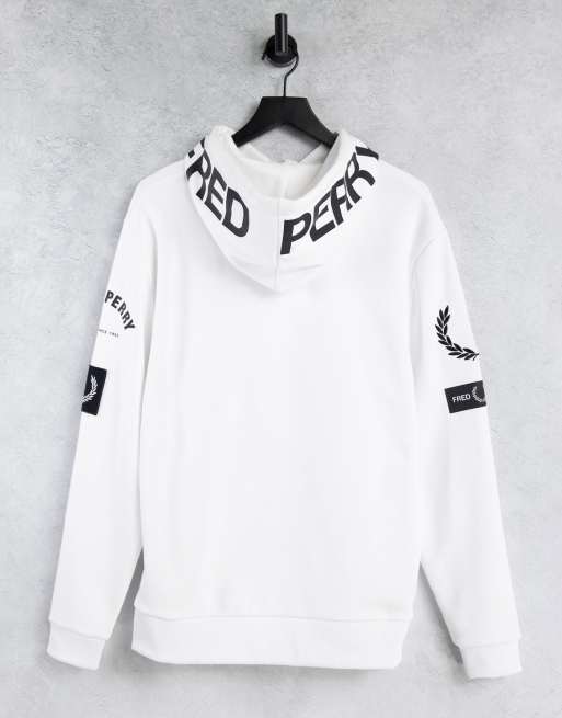 Fred perry white hoodie clearance, Fred Perry Abstract Sport Hooded Sweatshirt White Boardvillage clearance