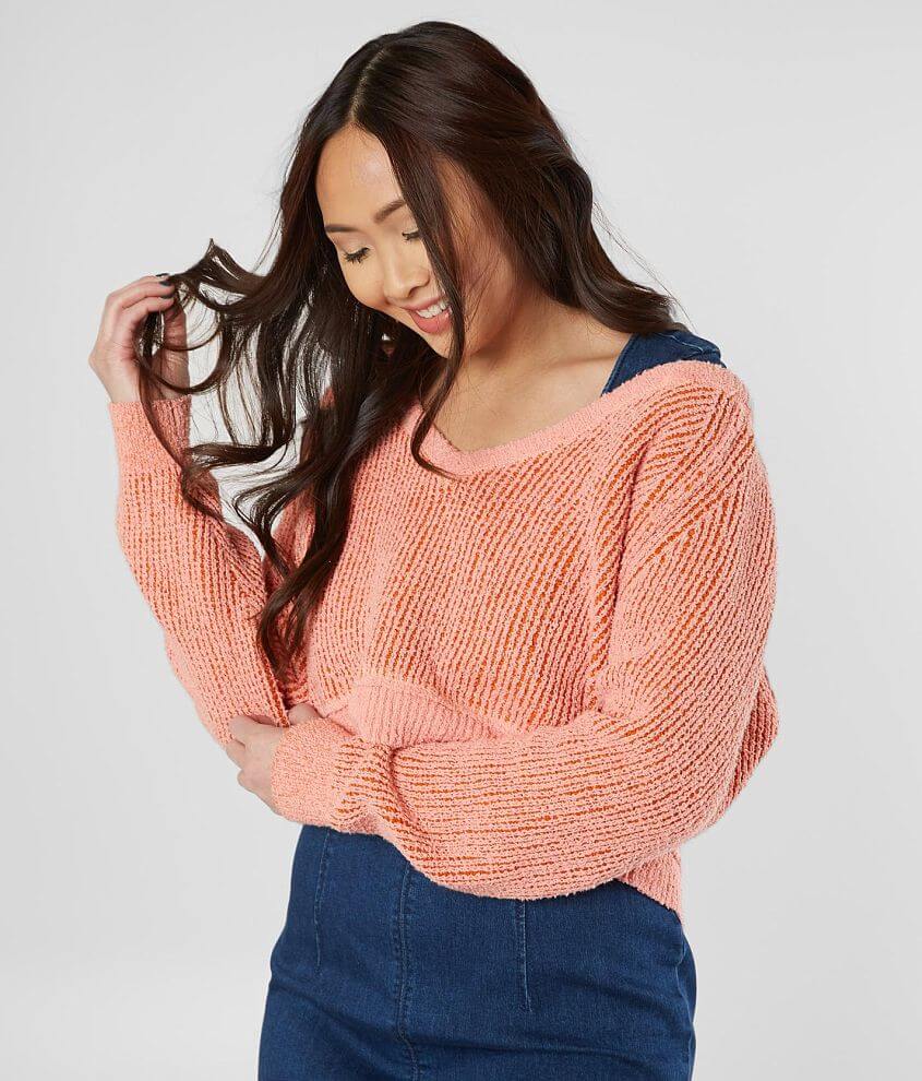 Free People High Low V Textured Slouchy Sweater Hot Tropics