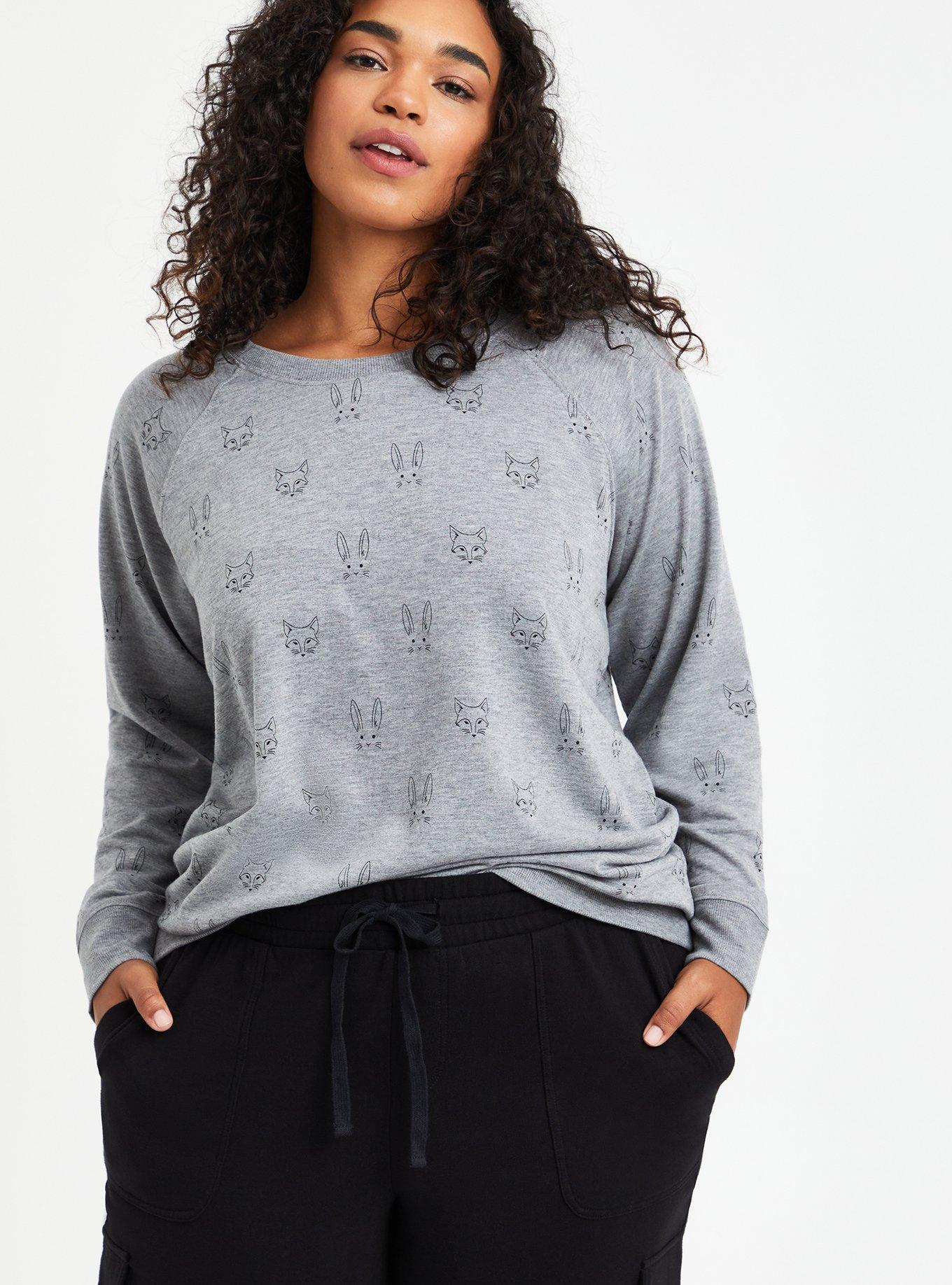 Plus Size Lt Weight French Terry Crew Neck Raglan Sweatshirt