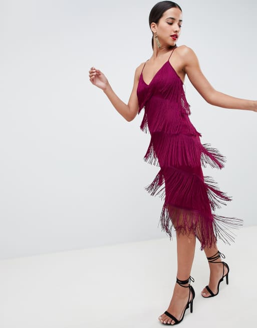ASOS DESIGN fringe mesh strappy midi bodycon dress ASOS