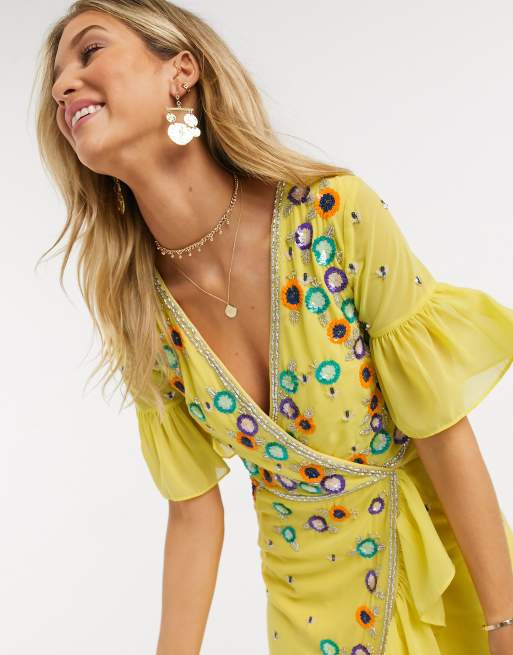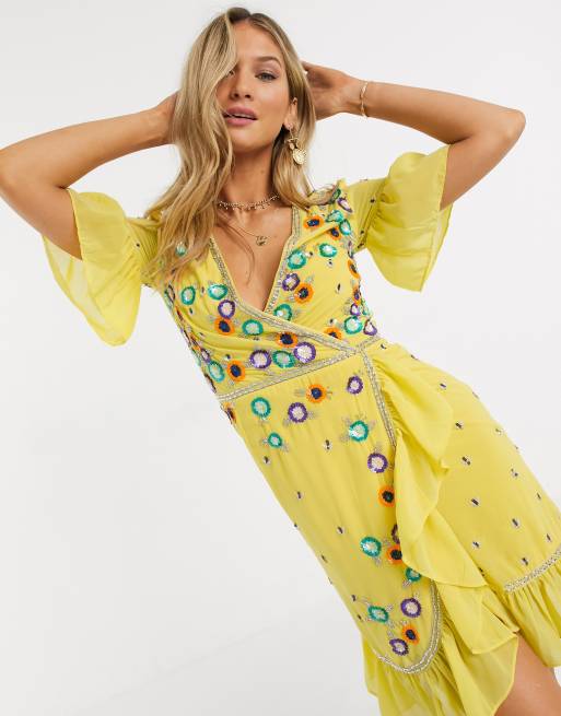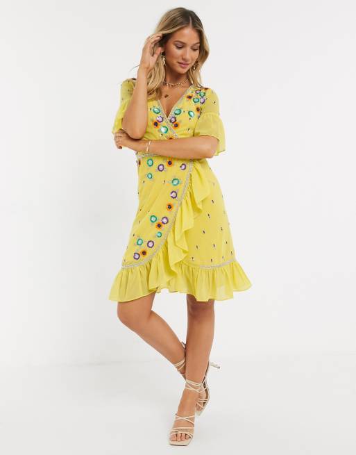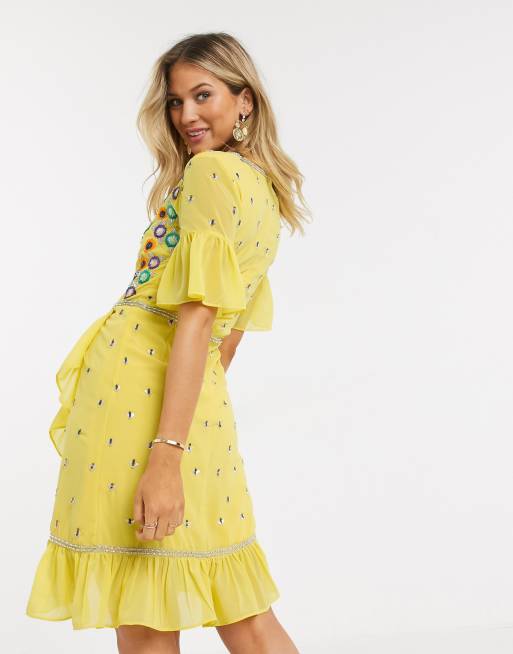 Frock Frill embroidered ruffle mini dress in yellow ASOS