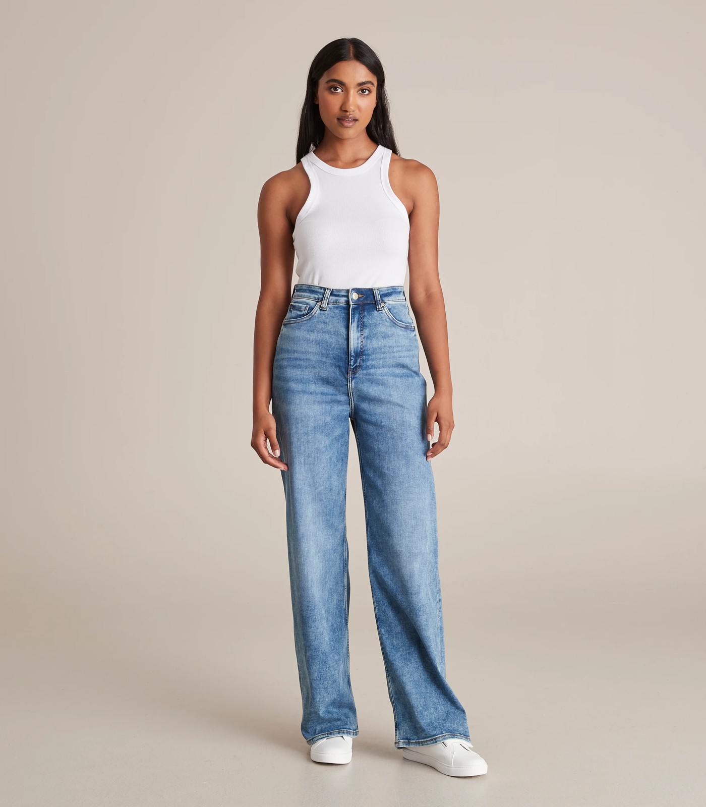 Minnie The Full Length Wide Leg Flared Jeans Mid Wash Donna Ida