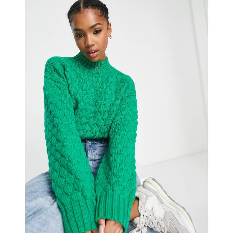 Monki diamond stitch knit jumper in green ASOS