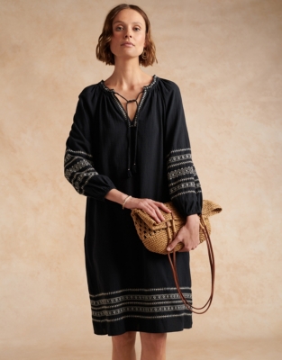Cotton Gauze Embroidered Boho Dress All Clothing Sale The