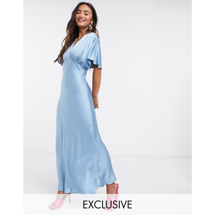 Ghost Bluebell satin dress in blue ASOS