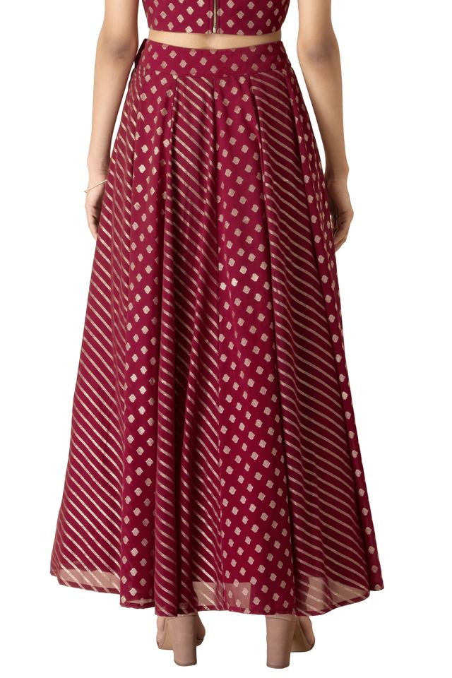 Gingham maroon skirt clearance, Buy INDYA Maroon Regular Fit Ankle Length Georgette Womens Festive clearance