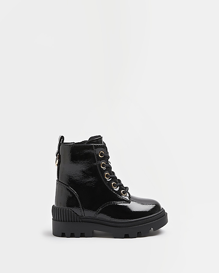 Girls black patent lace up boots clearance, New Look flat lace up boot in black patent ASOS clearance