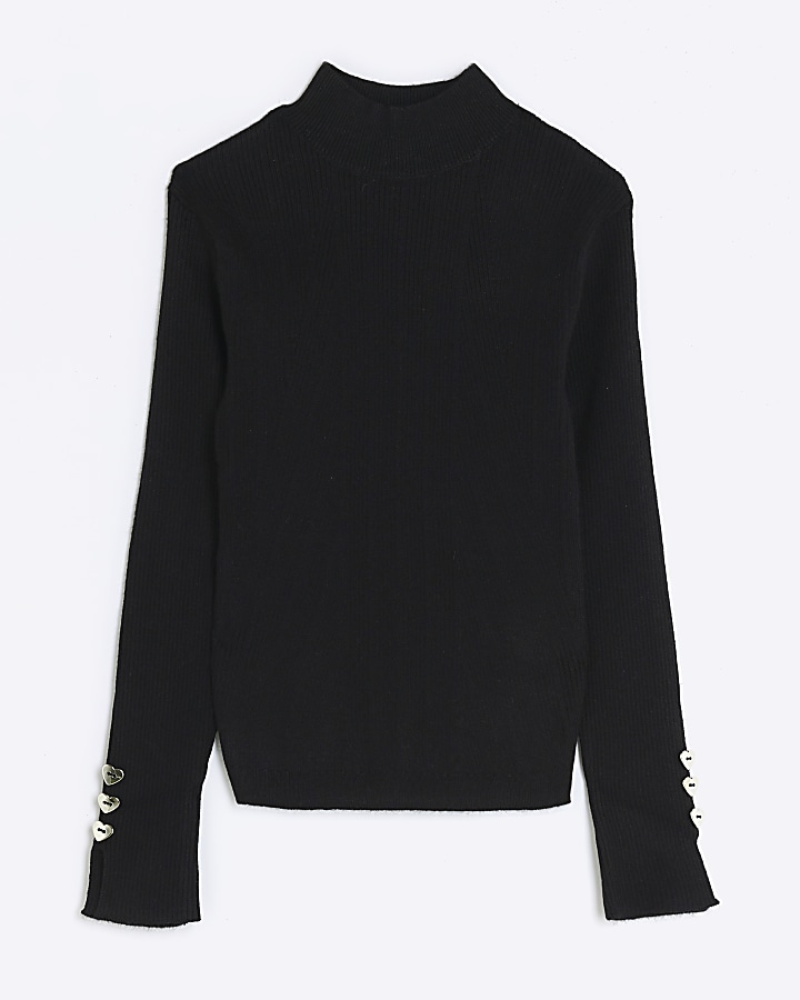 Girls black roll neck jumper clearance, Girls black rib high neck jumper River Island clearance
