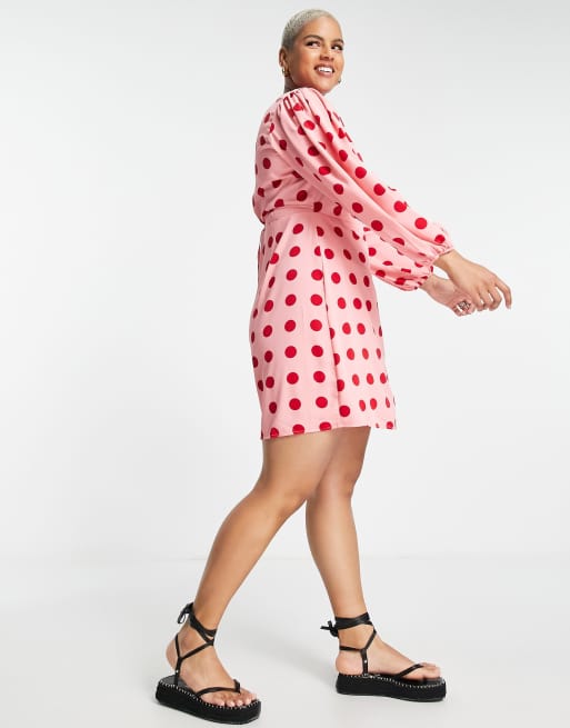 Glamorous Curve mini long sleeve wrap dress in pink red spot ASOS
