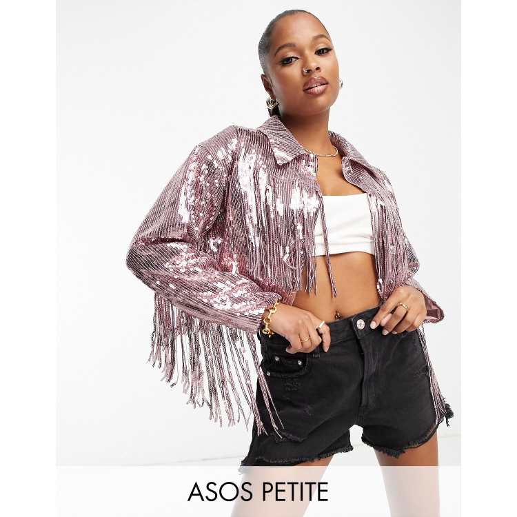 ASOS DESIGN Petite sequin fringe jacket in pink ASOS