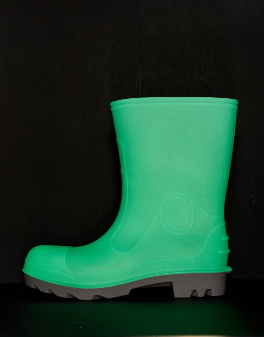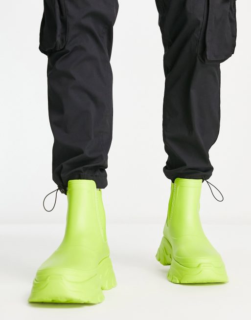 ASOS DESIGN chunky wellington boot in glow in the dark neon green