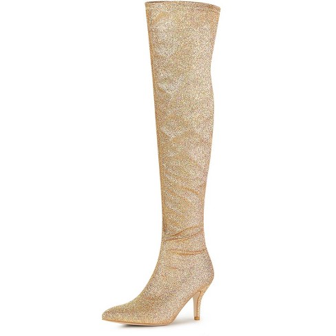 Gold over the knee boots clearance, Allegra K Women s Glitter Pointed Toe Stiletto Heel Over The Knee clearance