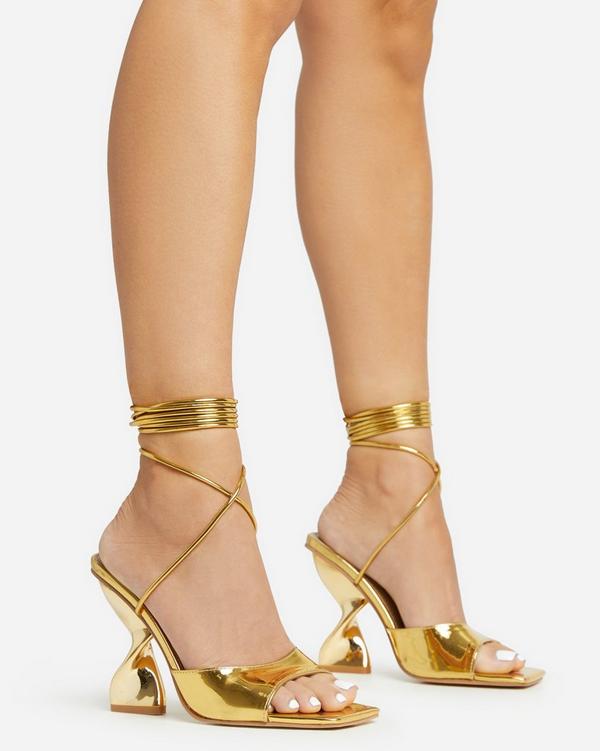 Midas Lace Up Square Toe Twisted Statement Heel In Gold Patent EGO