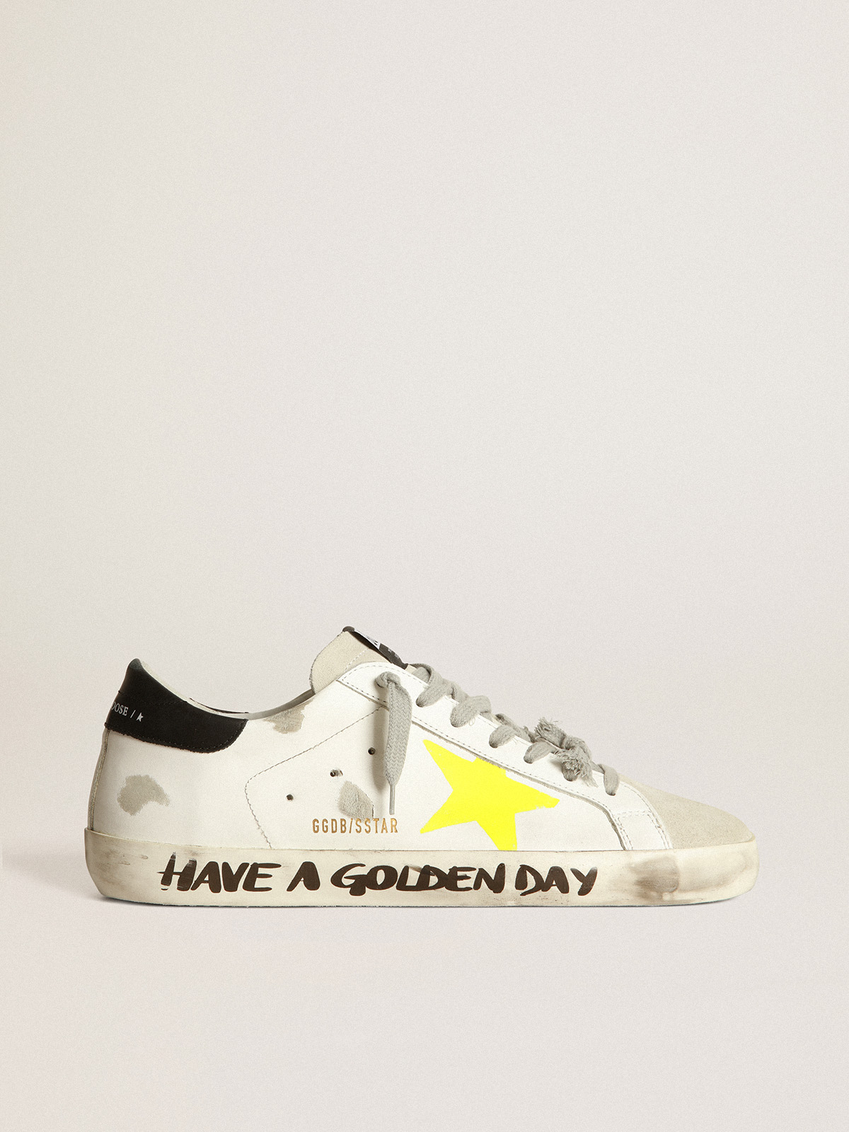 Sneaker Super Star con stella gialla stampata e talloncino in pelle nera