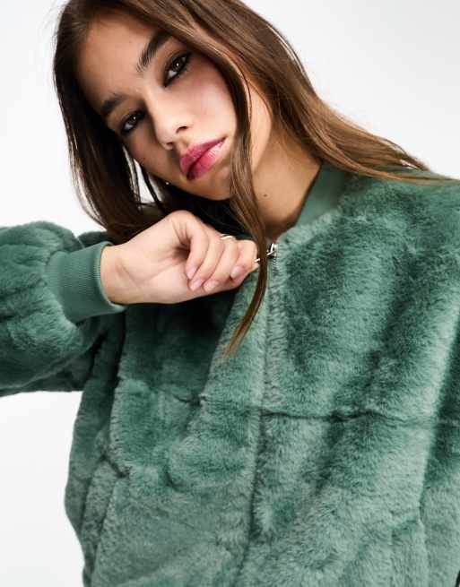 Green fur bomber jacket clearance