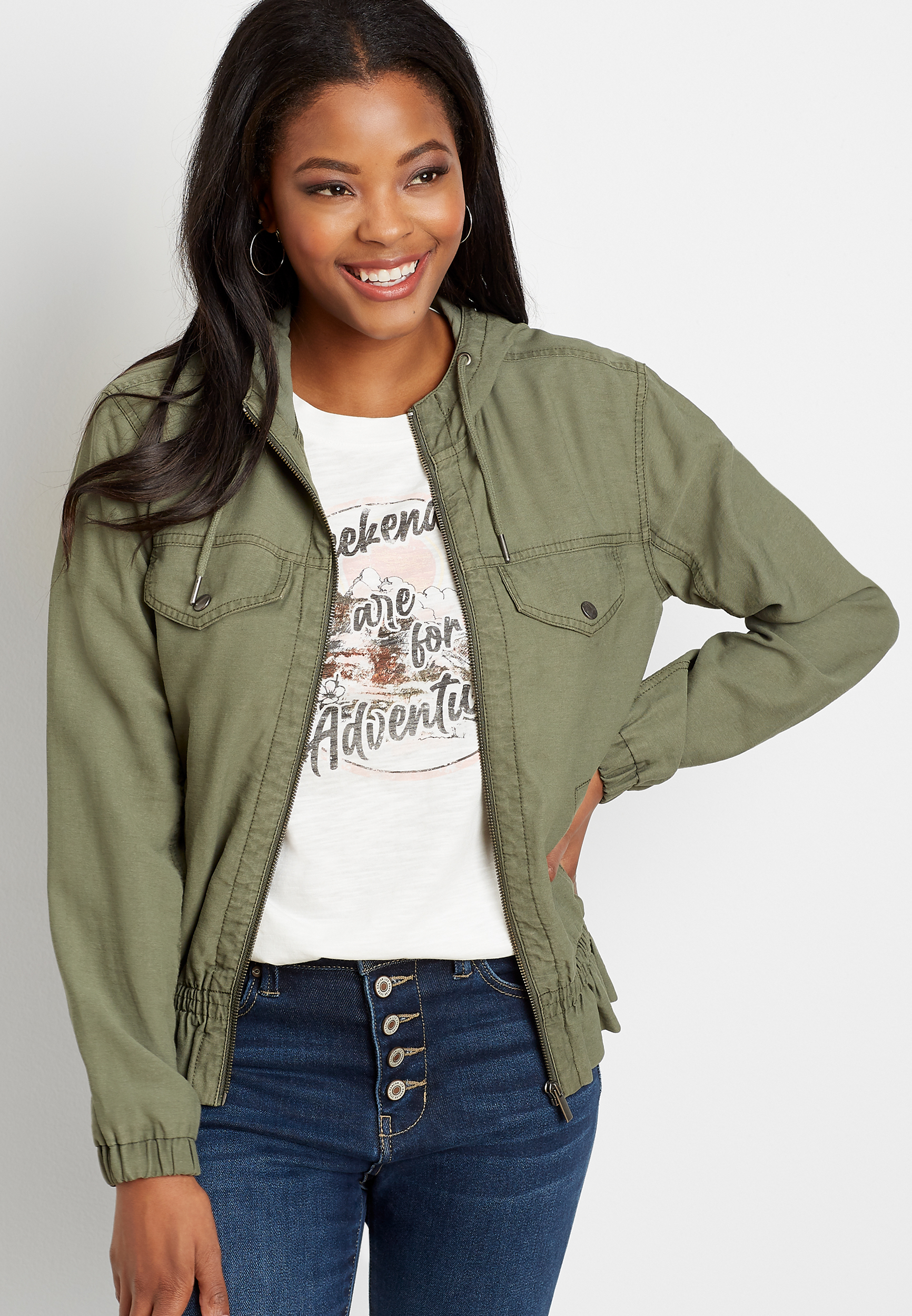 Buy SASSAFRAS Women s Green Fleece Peplum Jacket at Amazon.in