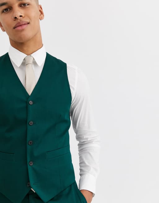 Green waistcoat cheap clearance, ASOS DESIGN wedding skinny suit waistcoat in cotton in forest clearance