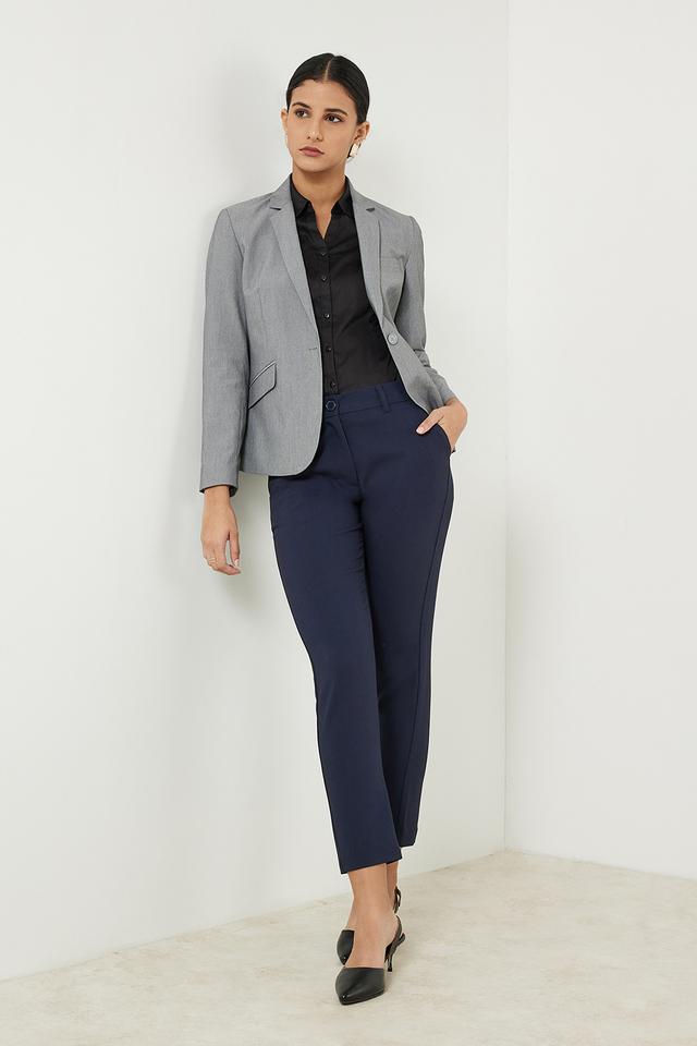 Grey casual blazer womens clearance, Buy STOP Solid Blended Fabric Women s Formal Wear Blazer clearance