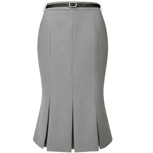 Grey fishtail skirt clearance, Hobemty Women s Elegant Skirt With Belt Below Knee Length Fishtail clearance