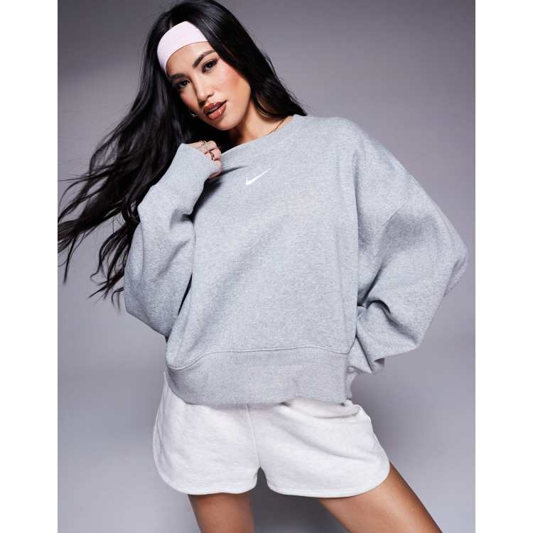 Nike mini swoosh over oversized crop sweatshirt in grey and sail