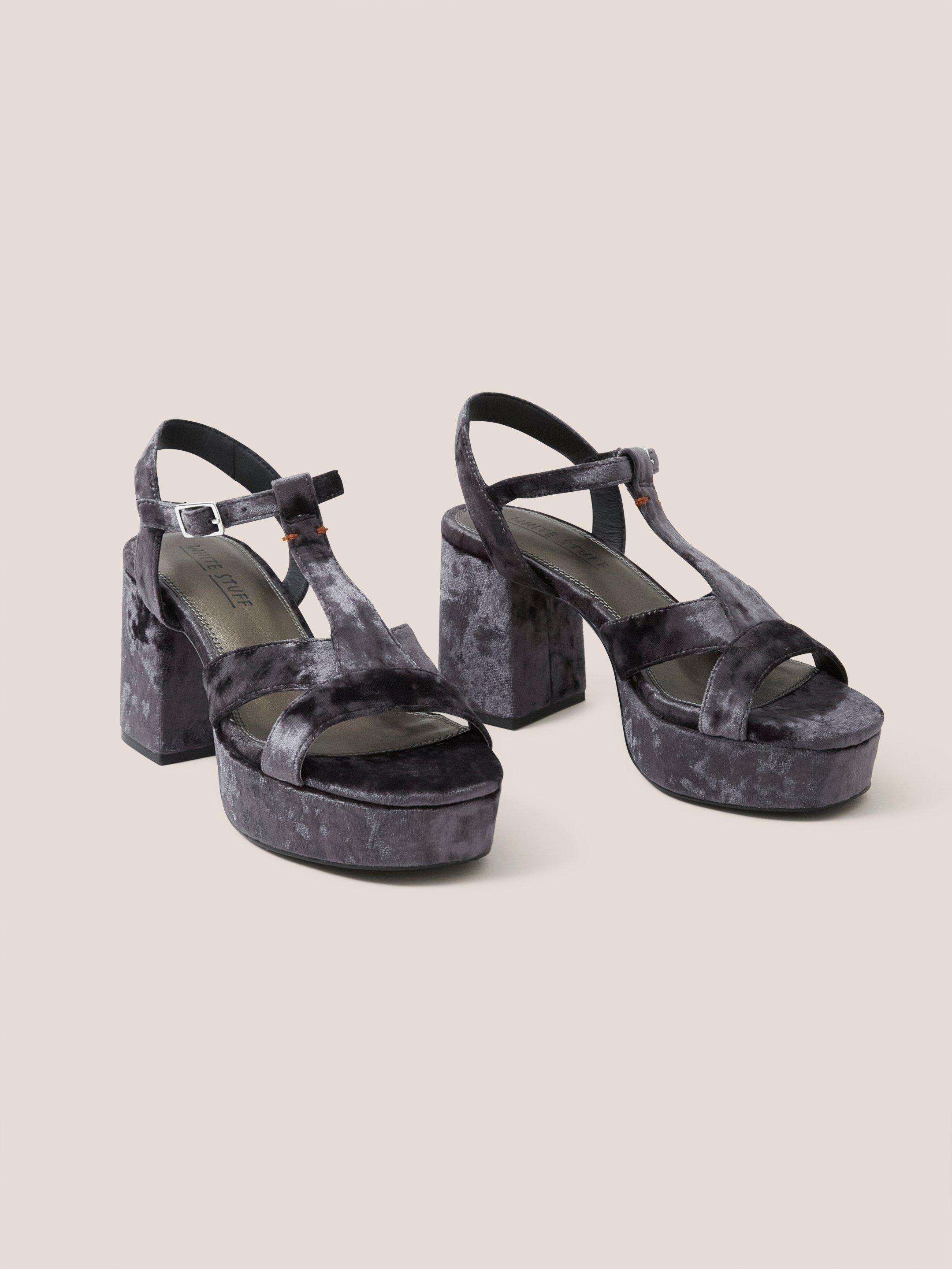 Elsa Velvet Heeled Sandal in DK GREY White Stuff