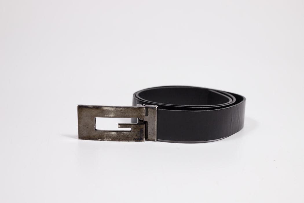 GUCCI Big G logo buckle leather belt size 80 32 black Gold 189789