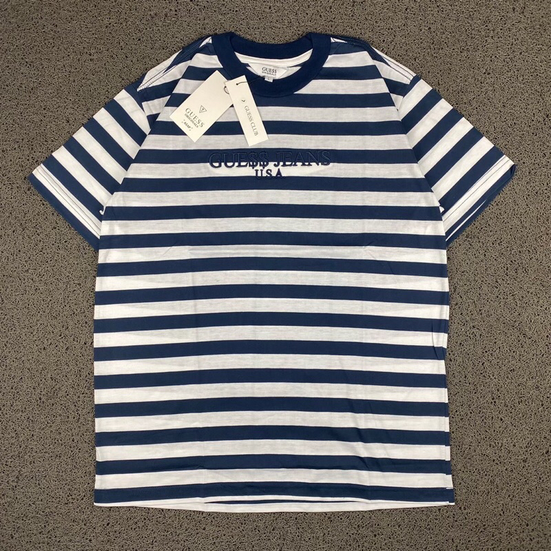 PUTIH Kaos T SHIRT GUESS STRIPE ASAP ROCKY LOGO White NAVY IMPORT