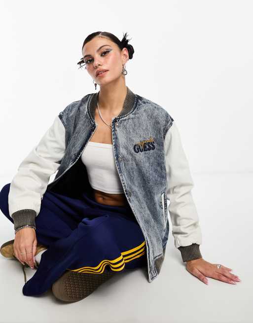 Guess denim bomber jacket clearance, Guess Jean Jacket Women s XS Light Blue G by Guess Denim Hooded clearance