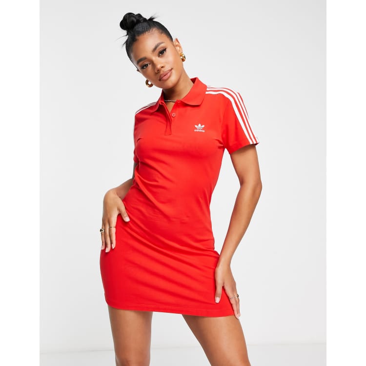 Vestido rojo estilo polo con dise o de tres rayas de adidas
