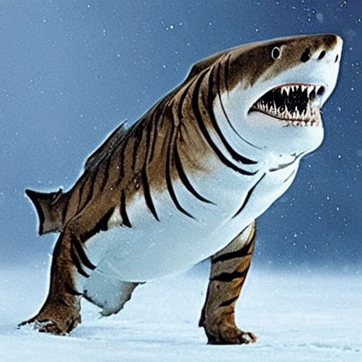 A shark tiger hybrid in the Arctic snow. A creature Stable Diffusion