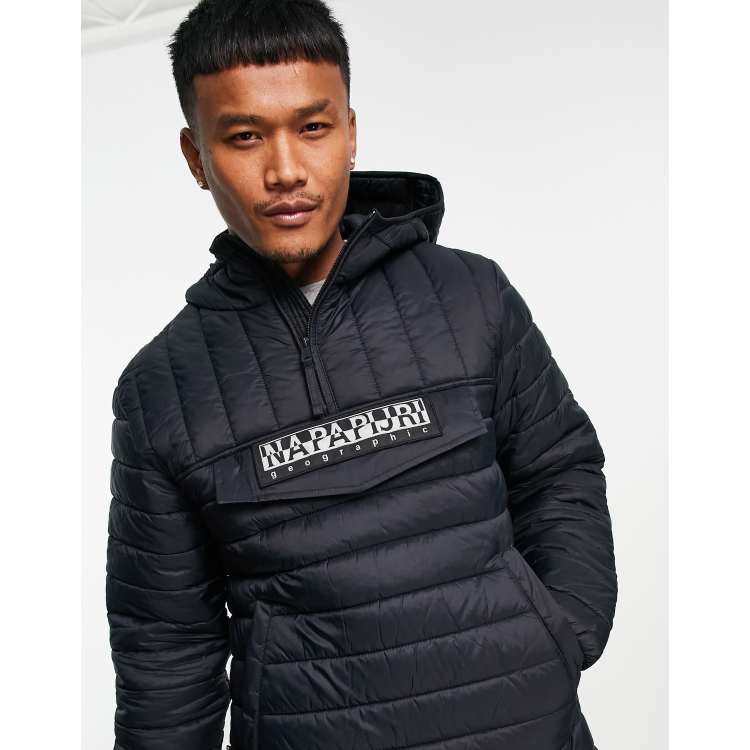 Napapijri a morgex overhead puffer jacket in black with half zip
