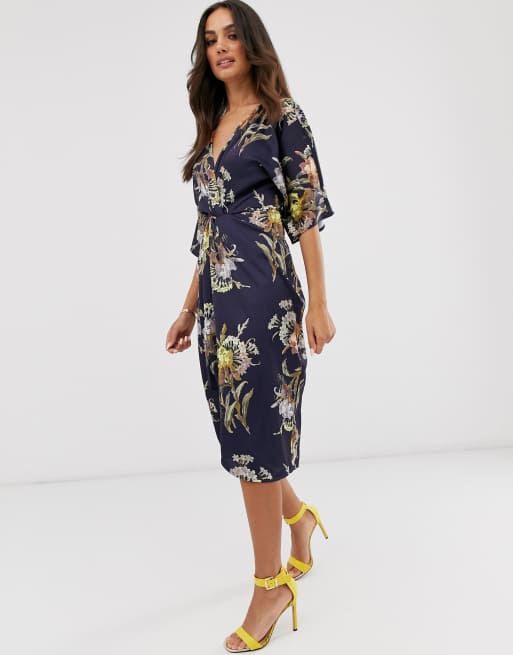 Hope Ivy open back drop hem midi tea dress in navy floral