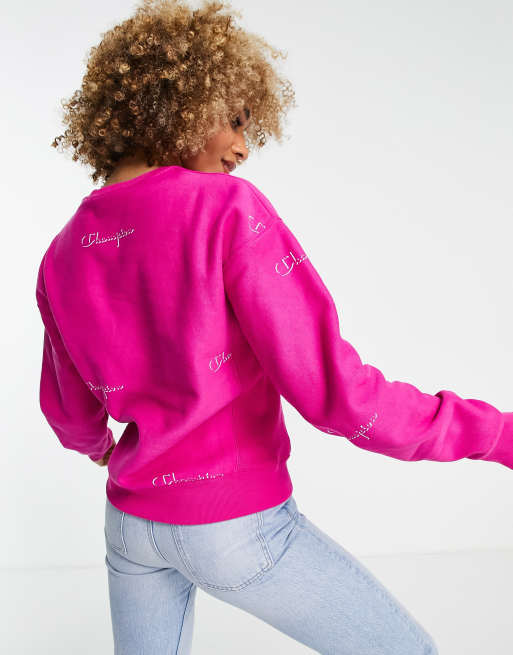 Hot pink champion sweatsuit clearance, Champion sweatshirt with repeat logo in pink clearance