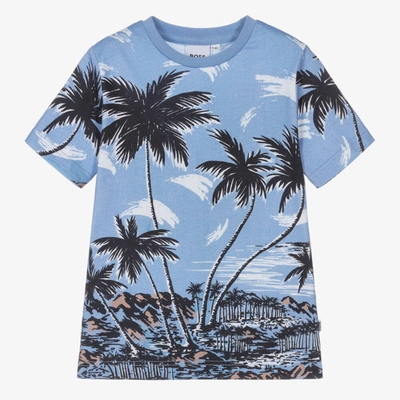 Hugo boss palm tree t shirt clearance, Hugo Boss Kids Boys Blue Tropical Print Cotton T shirt ModeSens clearance