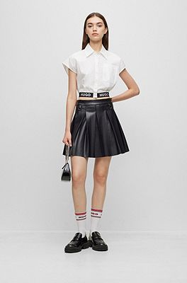 Pleated mini skirt in faux leather