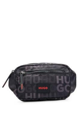 HUGO Stacked logo pattern belt bag with branded rubber patch