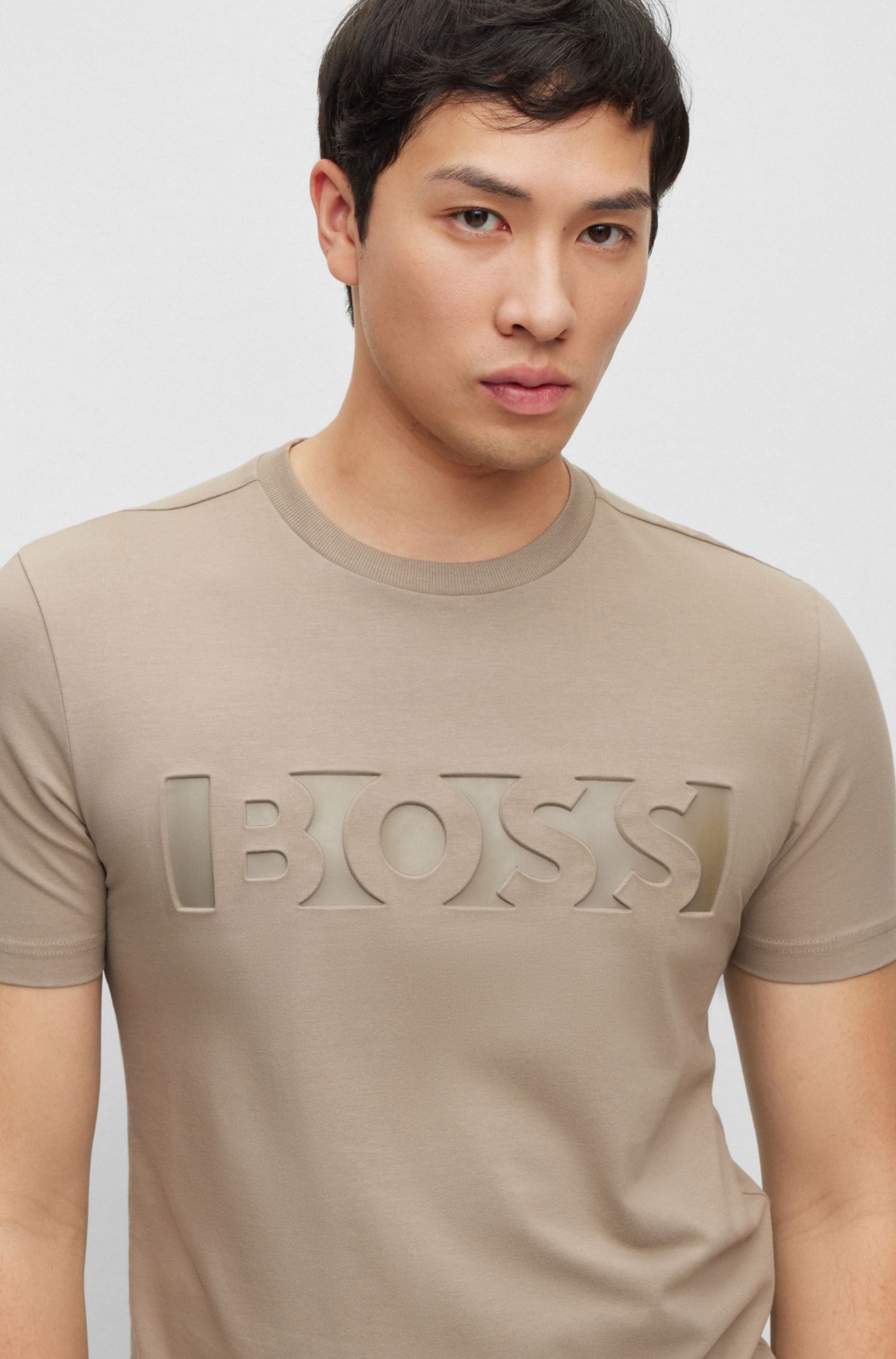 BOSS Stretch cotton T shirt with embossed logo artwork