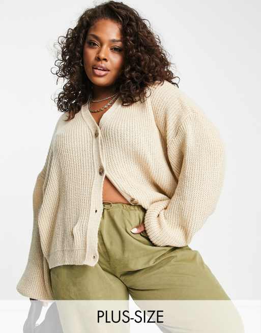 In The Style Plus exclusive knitted cable knit cardigan in oatmeal